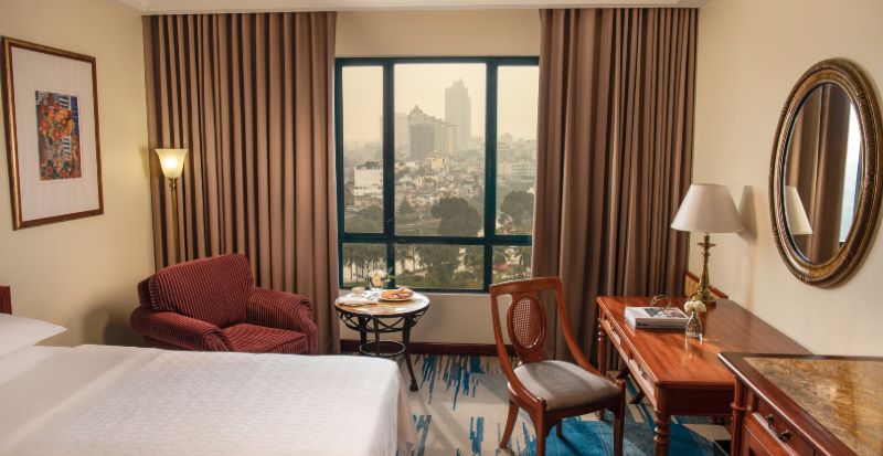 Khách sạn Sheraton Hanoi tọa lạc bên hồ Tây, cách sân bay quốc tế Nội Bài chỉ 20 phút đi xe. Không chỉ là khách sạn 5 sao gần sân bay nhất, du khách còn có thể dễ dàng di chuyển từ đây tới khu phố cổ Hà Nội, các địa điểm tham quan nổi tiếng nhộn nhịp chỉ trong vài phút. Tất cả 299 phòng nghỉ của khách sạn có hướng nhìn bao quát Hồ Tây và Sông Hồng. Nuông chiều vị giác với bữa tiệc buffet quốc tế tại nhà hàng Oven D'or hay khám phá những phong vị mới lạ của thực đơn cao cấp tại Hemispheres Steak & Seafood Grill - hai nhà hàng đạt giải thưởng danh giá từ Michelin và Tripadvisor của khách sạn. Khi du khách cần tiếp thêm năng lượng, hãy dành thời gian tập luyện tại phòng tập mở cửa 24/7, hay thư giãn với các dịch vụ tại trung tâm chăm sóc sức khỏe, bể sục hoặc bể bơi ngoài trời của chúng tôi.
